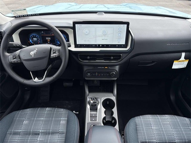 THIS VEHICLE INCLUDES THE FOLLOWING FEATURES AND OPTIONS: Convenience Package (Front Driver/Passenger Seat Back Map Pockets, Heated 8-Way Power Driver's Seat, LED Fog Lamps, Premium Wrapped Steering Wheel, and Universal Garage Door Opener (UGDO)), Equipment Group 250A, Bronco Sport Heritage, 4D Sport Utility, 1.5L EcoBoost, 8-Speed Automatic, 4WD, Robins Egg Blue, Navy Pier w/Plaid Cloth Front Bucket Seats, Power Moonroof, 4-Wheel Disc Brakes, 6 Speakers, ABS brakes, Air Conditioning, Alloy wheels, AM/FM radio: SiriusXM, AM/FM Stereo, Auto High-beam Headlights, Automatic temperature control, Brake assist, Compass, Delay-off headlights, Driver door bin, Driver vanity mirror, Dual front impact airbags, Dual front side impact airbags, Electronic Stability Control, Emergency communication system: SYNC 4 911 Assist, Four wheel independent suspension, Front anti-roll bar, Front Bucket Seats, Front Center Armrest, Front reading lights, Fully automatic headlights, Heated door mirrors, Illuminated entry, Knee airbag, Low tire pressure warning, Occupant sensing airbag, On-Road Assistance Kit (DIO), Outside temperature display, Overhead airbag, Overhead console, Panic alarm, Passenger door bin, Passenger vanity mirror, Plaid Cloth Front Bucket Seats, Power door mirrors, Power steering, Power windows, Radio data system, Rear anti-roll bar, Rear Parking Sensors, Rear reading lights, Rear seat center armrest, Rear window defroster, Rear window wiper, Remote keyless entry, Security system, SiriusXM, Speed control, Speed-sensing steering, Speed-Sensitive Wipers, Split folding rear seat, Steering wheel mounted audio controls, SYNC 4 w/Enhanced Voice Recognition, Tachometer, Telescoping steering wheel, Tilt steering wheel, Traction control, Trip computer, Variably intermittent wipers, and Wheels: 17 Oxford White-Painted Aluminum.