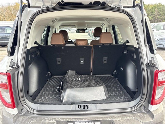 THIS VEHICLE INCLUDES THE FOLLOWING FEATURES AND OPTIONS: Equipment Group 300A, Bronco Sport Outer Banks, 4D Sport Utility, 1.5L EcoBoost, 8-Speed Automatic, 4WD, Oxford White, Ebony/Roast w/Premium Trimmed Front Bucket Seats w/Ebony/Roast, 4-Wheel Disc Brakes, 6 Speakers, ABS brakes, Air Conditioning, Alloy wheels, AM/FM radio: SiriusXM, AM/FM Stereo, Auto High-beam Headlights, Auto-dimming Rear-View mirror, Automatic temperature control, Brake assist, Compass, Delay-off headlights, Driver door bin, Driver vanity mirror, Dual front impact airbags, Dual front side impact airbags, Electronic Stability Control, Emergency communication system: SYNC 4 911 Assist, Four wheel independent suspension, Front anti-roll bar, Front Bucket Seats, Front Center Armrest, Front Driver/Passenger Seat Back Map Pockets, Front dual zone A/C, Front fog lights, Front reading lights, Fully automatic headlights, Garage door transmitter, Heated door mirrors, Heated front seats, Heated steering wheel, Illuminated entry, Knee airbag, Low tire pressure warning, Memory seat, Occupant sensing airbag, Outside temperature display, Overhead airbag, Overhead console, Panic alarm, Passenger door bin, Passenger vanity mirror, Power door mirrors, Power driver seat, Power passenger seat, Power steering, Power windows, Premium Trimmed Front Bucket Seats w/Ebony/Roast, Radio data system, Rain sensing wipers, Rear anti-roll bar, Rear Parking Sensors, Rear reading lights, Rear seat center armrest, Rear window defroster, Rear window wiper, Remote keyless entry, Security system, SiriusXM, Speed control, Speed-sensing steering, Speed-Sensitive Wipers, Split folding rear seat, Steering wheel mounted audio controls, SYNC 4 w/Enhanced Voice Recognition, Tachometer, Telescoping steering wheel, Tilt steering wheel, Traction control, Trip computer, Variably intermittent wipers, and Wheels: 18 Ebony Black-Painted Aluminum.
