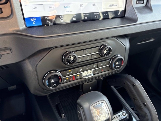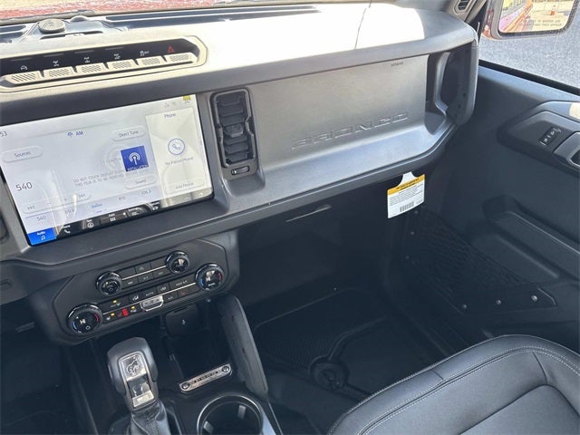 THIS VEHICLE INCLUDES THE FOLLOWING FEATURES AND OPTIONS: Equipment Group 332A Mid Package (2-Door Intelligent Access w/Lock/Unlock, Ambient Footwell Lighting, Connected Navigation, Dr & Pass Illuminated Sliding Visor Vanity Mirrors, Dual Smart Charging USB Ports, Dual-Zone Electronic Automatic Temperature Control, Front Row Heated Seats, Power Outlet - Back Side of Center Floor Console, and Rear Parking Sensors), Bronco Badlands, 4D Sport Utility, 2.7L EcoBoost V6, 10-Speed Automatic, 4WD, Ruby Red Metallic Tinted Clearcoat, Black Onyx w/Marine Grade Vinyl Bucket Seats, 4-Wheel Disc Brakes, 4.7 Axle Ratio, 7 Speakers, ABS brakes, Air Conditioning, Alloy wheels, AM/FM radio: SiriusXM with 360L, AM/FM Stereo, Auto High-Beam Headlamps, Auto High-beam Headlights, Auto-dimming Rear-View mirror, BLIS Blind Spot Information System, Brake assist, Carbonized Gray Molded-In-Color Hard Top, Compass, Delay-off headlights, Door Storage Bags, Driver door bin, Driver vanity mirror, Dual front impact airbags, Dual front side impact airbags, Electronic Stability Control, Emergency communication system: 911 Assist, Exterior Parking Camera Rear, Ford Performance Heavy-Duty Modular Front Bumper, Front anti-roll bar, Front Bucket Seats, Front Center Armrest, Front fog lights, Front reading lights, Front wheel independent suspension, Fully automatic headlights, Heated door mirrors, Heated front seats, Heated steering wheel, Illuminated entry, Integrated roll-over protection, Internet access capable: FordPass Connect, Lane-Keeping System, Leather Shift Knob, Low tire pressure warning, Marine Grade Vinyl Heated Bucket Seats, Occupant sensing airbag, Outside temperature display, Overhead airbag, Overhead console, Panic alarm, Passenger door bin, Passenger vanity mirror, Power door mirrors, Power steering, Power windows, Pre-Collision Assist w/Automatic Emergency Braking, Radio data system, Rear-View Camera, Rear-Window Defroster & Washer, Remote keyless entry, Security system, SiriusXM w/360L, Speed control, Split folding rear seat, Steering wheel mounted audio controls, SYNC 4, Tachometer, Telescoping steering wheel, Tilt steering wheel, Traction control, Trip computer, Variably intermittent wipers, Voltmeter, and Wheels: 17 Carbonized Gray-Painted Aluminum.