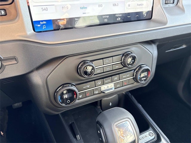 THIS VEHICLE INCLUDES THE FOLLOWING FEATURES AND OPTIONS: Equipment Group 312A Mid Package, Bronco Outer Banks Advanced, 4D Sport Utility, 2.3L EcoBoost I-4, 10-Speed Automatic, 4WD, Oxford White, Smoked Truffle w/Black Onyx w/Heated Leather-Trimmed/Vinyl Bucket Seats, Navigation system: Connected Navigation, 18 Bright Machined Aluminum Wheels, 3.73 Axle Ratio, 4-Wheel Disc Brakes, 7 Speakers, ABS brakes, Air Conditioning, Alloy wheels, AM/FM radio: SiriusXM with 360L, AM/FM Stereo, Auto High-beam Headlights, Auto-dimming Rear-View mirror, Automatic temperature control, Brake assist, Carbonized Gray Molded-In-Color Hard Top, Cargo Net Kit (DIO), Compass, Connected Navigation, Delay-off headlights, Driver door bin, Driver vanity mirror, Dual front impact airbags, Dual front side impact airbags, Electronic Stability Control, Emergency communication system: 911 Assist, Exterior Parking Camera Rear, Front anti-roll bar, Front Bucket Seats, Front Center Armrest, Front dual zone A/C, Front fog lights, Front reading lights, Front wheel independent suspension, Fully automatic headlights, Hard Top Sound Deadening Headliner, Heated door mirrors, Heated front seats, Heated Leather-Trimmed/Vinyl Bucket Seats, Heated steering wheel, Illuminated entry, Integrated roll-over protection, Internet access capable: FordPass Connect, Leather Shift Knob, Low tire pressure warning, Occupant sensing airbag, On-Road Assistance Kit (DIO), Outside temperature display, Overhead airbag, Overhead console, Panic alarm, Passenger door bin, Passenger vanity mirror, Power door mirrors, Power driver seat, Power passenger seat, Power steering, Power windows, Radio data system, Rear seat center armrest, Rear-Window Defroster & Washer, Remote keyless entry, Security system, SiriusXM w/360L, Speed control, Split folding rear seat, Steering wheel mounted audio controls, SYNC 4, Tachometer, Telescoping steering wheel, Tilt steering wheel, Traction control, Trip computer, Variably intermittent wipers, and Voltmeter.