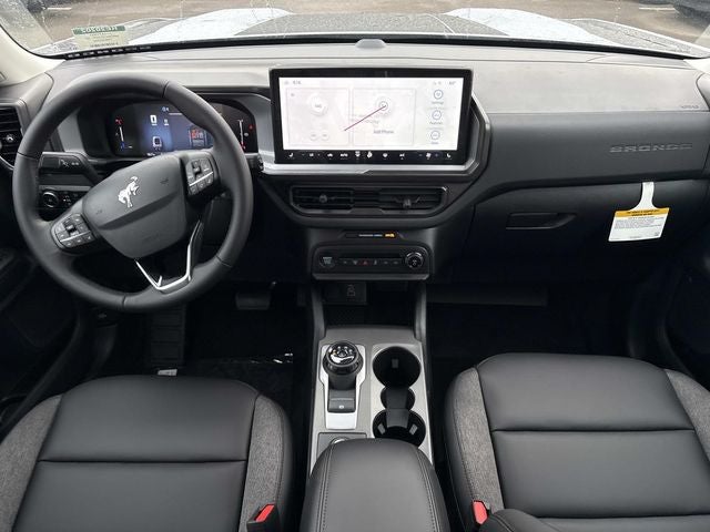 THIS VEHICLE INCLUDES THE FOLLOWING FEATURES AND OPTIONS: Black Appearance Package (Carbon Black Grille with Black Painted BRONCO Lettering, Cargo Mat, Front and Rear Floor Liners Without Carpet Mats, Front Driver/Passenger Seat Back Map Pockets, Liftgate with Black BRONCO SPORT Lettering, Painted Shadow Black Roof, Premium Trimmed Front Sport Contour Bucket Seats, and Wheels: 17 Matte Black-Painted Aluminum), Convenience Package (Flood Light Adjustable Liftgate, Heated 8-Way Power Driver's Seat, LED Fog Lamps, and Premium Wrapped Steering Wheel), Equipment Group 200A Standard Package (AM/FM Stereo, Cloth with Easy-to-Clean Front Bucket Seats, SiriusXM with 360L, SYNC 4 with Enhanced Voice Recognition, and Wheels: 17 Carbonized Gray Painted Aluminum), Ford Connectivity Package (1-Year Included), Internet access capable: 5G Modem - Ford Connectivity Package, Bronco Sport Big Bend, 4D Sport Utility, 1.5L EcoBoost, 8-Speed Automatic, 4WD, Space White Metallic, Ebony w/Premium Trimmed Front Sport Contour Bucket Seats, 4-Wheel Disc Brakes, 6 Speakers, ABS brakes, Air Conditioning, Alloy wheels, AM/FM radio: SiriusXM with 360L, Apple CarPlay/Android Auto, Auto High-beam Headlights, Automatic temperature control, Brake assist, Cargo Management System (Shelf/Divider/Table), Compass, Delay-off headlights, Driver door bin, Driver vanity mirror, Dual front impact airbags, Dual front side impact airbags, Electronic Stability Control, Emergency communication system: SYNC 4 911 Assist, Exterior Parking Camera Rear, First Aid Kit, Four wheel independent suspension, Front anti-roll bar, Front Bucket Seats, Front Center Armrest, Front reading lights, Fully automatic headlights, Heated door mirrors, Illuminated entry, Knee airbag, Low tire pressure warning, Occupant sensing airbag, Outside temperature display, Overhead airbag, Overhead console, Panic alarm, Passenger door bin, Passenger vanity mirror, Power door mirrors, Power steering, Power windows, Radio data system, Rear anti-roll bar, Rear Parking Sensors, Rear reading lights, Rear seat center armrest, Rear window defroster, Rear window wiper, Remote keyless entry, Security system, Speed control, Speed-sensing steering, Speed-Sensitive Wipers, Split folding rear seat, Steering wheel mounted audio controls, Tachometer, Telescoping steering wheel, Tilt steering wheel, Traction control, Trip computer, and Variably intermittent wipers.