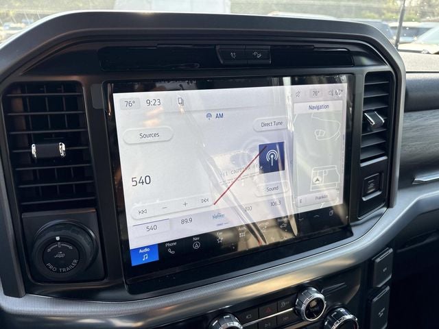 THIS VEHICLE INCLUDES THE FOLLOWING FEATURES AND OPTIONS: Equipment Group 501A Mid (6 Angular Bright Anodized Step Bar, ActiveX Trimmed Bucket Seats, Illuminated Driver and Passenger Visors, Power-Adjustable Pedals with Memory, Power-Sliding Rear Window, Radio: B&O Sound System by Bang and Olufsen, SYNC 4 with Enhanced Voice Recognition, and Wheels: 20 Chrome-Like PVD), Ford Connectivity Package (1-Year Included), FX4 Off-Road Package (4x4 FX4 Off-Road Bodyside Decal, Electronic Locking with 3.31 Axle Ratio, Hill Descent Control, Monotube Rear Shocks, Off-Road Tuned Front Shock Absorbers, and Tray Style Floor Liner Without Carpet Mats), Internet access capable: 5G Modem - Ford Connectivity Package, Tow/Haul Package (Integrated Trailer Brake Controller), F-150 Lariat, 4D SuperCrew, 3.5L PowerBoost Full-Hybrid V6, 10-Speed Automatic, 4WD, Agate Black Metallic, Black/Smoked Truffle w/ActiveX Trimmed Smoked Truffle Bucket Seats, Navigation system: Connected Navigation, 4-Wheel Disc Brakes, 8 Speakers, ABS brakes, Air Conditioning, Alloy wheels, AM/FM radio: SiriusXM with 360L, Auto High-beam Headlights, Auto-dimming door mirrors, Auto-dimming Rear-View mirror, Automatic temperature control, Brake assist, Bumpers: chrome, Chrome wheels, Compass, Delay-off headlights, Driver door bin, Driver vanity mirror, Dual front impact airbags, Dual front side impact airbags, Electronic Stability Control, Emergency communication system: SYNC 4 911 Assist, Front anti-roll bar, Front Bucket Seats, Front Center Armrest, Front dual zone A/C, Front fog lights, Front reading lights, Front wheel independent suspension, Fully automatic headlights, Garage door transmitter, Heated door mirrors, Heated front seats, Heated steering wheel, Illuminated entry, Low tire pressure warning, Memory seat, Occupant sensing airbag, Outside temperature display, Overhead airbag, Overhead console, Panic alarm, Passenger door bin, Passenger vanity mirror, Power door mirrors, Power driver seat, Power passenger seat, Power steering, Power windows, Radio data system, Rain sensing wipers, Rear reading lights, Rear seat center armrest, Rear step bumper, Rear window defroster, Remote keyless entry, Security system, Speed control, Split folding rear seat, Steering wheel mounted audio controls, Tachometer, Telescoping steering wheel, Tilt steering wheel, Traction control, Trip computer, Turn signal indicator mirrors, Variably intermittent wipers, Ventilated front seats, and Wheels: 18 Chrome-Like PVD.