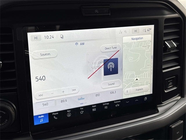 THIS VEHICLE INCLUDES THE FOLLOWING FEATURES AND OPTIONS: Bed Utility Package (4 Pickup Box Tie-Down Plates, Bed Storage Boxes, LED Box Lighting, and Tailgate Step with Work Surface), Equipment Group 302A Mid (18 Painted Aluminum Wheels, 360 Degree Camera, 400W Pro Power Onboard (cab & Bed), Adaptive Cruise Control with Stop and Go, AEB Oncoming, Auto-Dimming Rear-View Mirror, Body-Color Door Handles, Cloth 40/20/40 Front Seat, Dual-Zone Electronic Automatic Temperature Control, Ford Co-Pilot360 Assist 2.0, Front Parking Sensors, Heated Front Seats, Intelligent Access with Push Button Start, Power Glass Heated Sideview Mirrors, Power-Sliding Rear Window, Radio: AM/FM Stereo with SiriusXM 360L, Remote Start System with Remote Tailgate Release, SYNC 4 with Enhanced Voice Recognition, Towing Technology, and Wrapped Steering Wheel), Ford Connectivity Package (1-Year Included), Internet access capable: 5G Modem - Ford Connectivity Package, Tow/Haul Package (Integrated Trailer Brake Controller), XLT Black Appearance Package (6 Black Running Boards, Black Exterior Badging, Black Grille, Body-Color Front and Rear Bumpers, Dark Interior Appliques, Floor Shifter, Gray Box Side Decal, Unique Sport Cloth 40/Console/40 Front-Seats, and Wheels: 18 Gloss Black), F-150 XLT, 4D SuperCrew, 3.5L V6 EcoBoost, 10-Speed Automatic, 4WD, Carbonized Gray Metallic, Black w/Unique Sport Cloth 40/Console/40 Power Front Seat, Black Platform Running Boards, 3.31 Axle Ratio, 4-Wheel Disc Brakes, 6 Speakers, ABS brakes, Air Conditioning, Alloy wheels, AM/FM radio: SiriusXM with 360L, Auto High-beam Headlights, Brake assist, Bumpers: body-color, Compass, Delay-off headlights, Driver door bin, Driver vanity mirror, Dual front impact airbags, Dual front side impact airbags, Electronic Stability Control, Emergency communication system: SYNC 4 911 Assist, Front anti-roll bar, Front Center Armrest, Front fog lights, Front reading lights, Front wheel independent suspension, Fully automatic headlights, Heated door mirrors, Illuminated entry, Low tire pressure warning, Occupant sensing airbag, Outside temperature display, Overhead airbag, Overhead console, Panic alarm, Passenger door bin, Passenger vanity mirror, Power door mirrors, Power steering, Power windows, Radio data system, Rear Parking Sensors, Rear reading lights, Rear step bumper, Rear window defroster, Remote keyless entry, Security system, Speed control, Split folding rear seat, Steering wheel mounted audio controls, Tachom