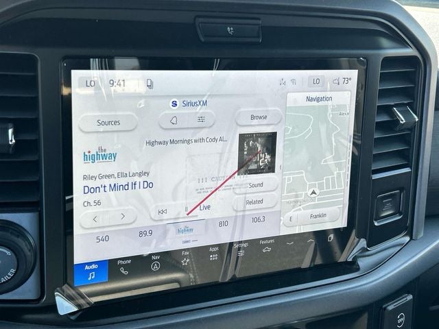 THIS VEHICLE INCLUDES THE FOLLOWING FEATURES AND OPTIONS: Equipment Group 302A Mid (18 Painted Aluminum Wheels, 360 Degree Camera, 400W Pro Power Onboard (cab & Bed), Adaptive Cruise Control with Stop and Go, Auto-Dimming Rear-View Mirror, Body-Color Door Handles, Cloth 40/20/40 Front Seat, Dual-Zone Electronic Automatic Temperature Control, Ford Co-Pilot360 Assist 2.0, Front Parking Sensors, Heated Front Seats, Intelligent Access with Push Button Start, Power Glass Heated Sideview Mirrors, Power-Sliding Rear Window, Radio: AM/FM Stereo with SiriusXM 360L, Remote Start System with Remote Tailgate Release, SYNC 4 with Enhanced Voice Recognition, Towing Technology, and Wrapped Steering Wheel), Ford Connectivity Package (1-Year Included), Internet access capable: 5G Modem - Ford Connectivity Package, Mobile Office Package (Console Worksurface and Partitioned Lockable Rear Storage), XLT Black Appearance Package (6 Black Running Boards, Black Exterior Badging, Black Grille, Body-Color Front and Rear Bumpers, Dark Interior Appliques, Gray Box Side Decal, Unique Sport Cloth 40/Console/40 Front-Seats, and Wheels: 18 Gloss Black), F-150 XLT, 4D SuperCrew, 3.5L PowerBoost Full-Hybrid V6, 10-Speed Automatic, 4WD, Ruby Red Met Tinted CC, Black w/Unique Sport Cloth 40/Console/40 Power Front Seat, Chrome Front and Rear Bumpers, 3.31 Axle Ratio, 4-Wheel Disc Brakes, ABS brakes, Air Conditioning, Alloy wheels, AM/FM radio: SiriusXM with 360L, Auto High-beam Headlights, Brake assist, Bumpers: body-color, Compass, Delay-off headlights, Driver door bin, Driver vanity mirror, Dual front impact airbags, Dual front side impact airbags, Electronic Stability Control, Emergency communication system: SYNC 4 911 Assist, Front anti-roll bar, Front Center Armrest, Front fog lights, Front reading lights, Front wheel independent suspension, Fully automatic headlights, Heated door mirrors, Illuminated entry, Low tire pressure warning, Occupant sensing airbag, Outside temperature display, Overhead airbag, Overhead console, Panic alarm, Passenger door bin, Passenger vanity mirror, Power door mirrors, Power steering, Power windows, Radio data system, Rear reading lights, Rear step bumper, Rear window defroster, Remote keyless entry, Security system, Speed control, Split folding rear seat, Steering wheel mounted audio controls, Tachometer, Telescoping steering wheel, Tilt steering wheel, Traction control, Trip computer, and Variably intermittent wipers.