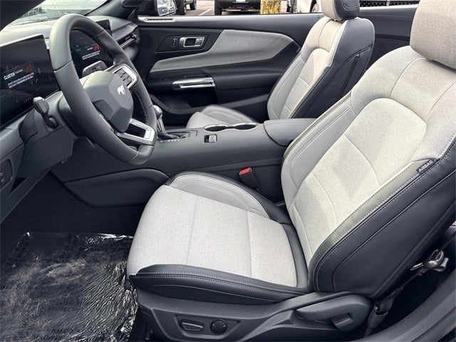 THIS VEHICLE INCLUDES THE FOLLOWING FEATURES AND OPTIONS: Anti-Theft Package (Active Anti-Theft System, Locking Center Console, and Wheel Locking Kit), Equipment Group 101A High Package (9-Speaker Stereo System, Perimeter Alarm, AM/FM Stereo, Cloth/Vinyl Heated Bucket Seats, and SYNC 4), Mustang Nite Pony Package (Black Mirror Caps and Wheels: 19 x 8.5 Ebony Black-Painted Aluminum), Mustang EcoBoost, 2D Convertible, EcoBoost 2.3L I4 GTDi DOHC Turbocharged VCT, 10-Speed Automatic, RWD, Shadow Black, Space Gray w/Cloth/Vinyl Heated Bucket Seats, Exterior Parking Camera Rear, 1st Row Carpeted Black Floor Mats, 4-Wheel Disc Brakes, 9 Speakers, ABS brakes, Active Valve Performance Exhaust, Air Conditioning, Alloy wheels, AM/FM radio: SiriusXM with 360L, Auto High-beam Headlights, Automatic temperature control, Brake assist, Bumpers: body-color, Compass, Convertible roof lining, Delay-off headlights, Driver door bin, Driver vanity mirror, Dual front impact airbags, Dual front side impact airbags, Electronic Stability Control, Emergency communication system: 911 Assist, Four wheel independent suspension, Front anti-roll bar, Front Bucket Seats, Front Center Armrest, Front dual zone A/C, Front reading lights, Fully automatic headlights, Glass rear window, Heated front seats, Illuminated entry, Knee airbag, Leather Shift Knob, Low tire pressure warning, Occupant sensing airbag, Outside temperature display, Overhead console, Panic alarm, Passenger door bin, Passenger vanity mirror, Power convertible roof, Power door mirrors, Power driver seat, Power steering, Power windows, Radio data system, Rain sensing wipers, Rear anti-roll bar, Rear Parking Sensors, Rear window defroster, Remote keyless entry, Security system, Speed control, Speed-sensing steering, Speed-Sensitive Wipers, Sport steering wheel, Steering wheel mounted audio controls, Tachometer, Telescoping steering wheel, Tilt steering wheel, Traction control, Trip computer, Variably intermittent wipers, and Voltmeter.