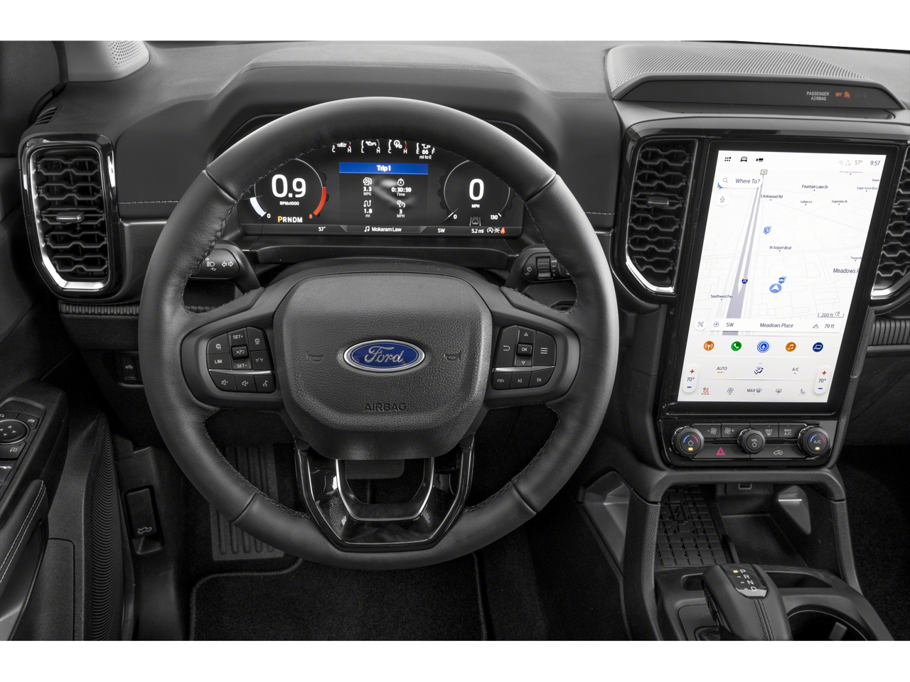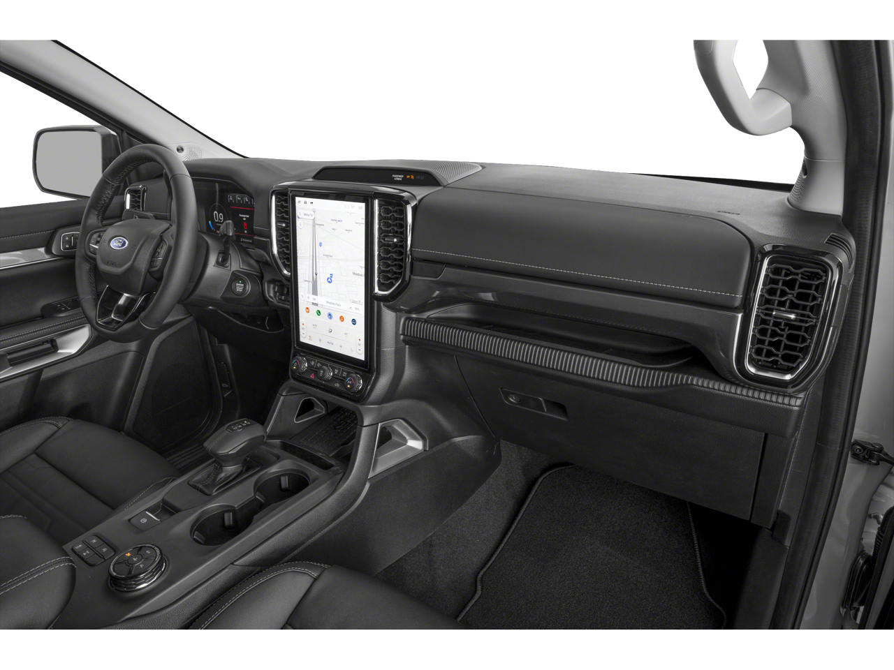 THIS VEHICLE INCLUDES THE FOLLOWING FEATURES AND OPTIONS: Convenience Package (LED Bed Lighting, Pro Power Onboard - 400W, and Wireless Charging Pad), Equipment Group 500A Standard (ActiveX Trimmed Front Heated Bucket Seats, Radio: B&O Sound System by Bang and Olufsen, SiriusXM with 360L and 3-Month Trial Subscription, and SYNC 4A with Connected Navigation), FX4 Off-Road Package (Electronic-Locking Rear Differential, FX4 Off-Road Box Decal, FX4 Selectable Drive Modes, Off-Road Screen in Center Stack, Off-Road Tuned Shocks, and Trail Control), Sport Appearance Package (Black Grille Surround, Chrome Center Bar and Grille Surround, Gray Painted Front Fascia and Rear Bumper, Sport Box Decal, and Wheels: 18 Machined Aluminum with Dark Pockets), Trailer Tow Package (Class IV Trailer Hitch Receiver), Ranger Lariat, 4D Crew Cab, EcoBoost 2.3L I4 GTDi DOHC Turbocharged VCT, 10-Speed Automatic, 4WD, Desert Sand, Sandstone w/ActiveX Trimmed Front Heated Bucket Seats, Navigation system: Connected Navigation, 10 Speakers, 4-Wheel Disc Brakes, ABS brakes, Air Conditioning, Alloy wheels, AM/FM radio: SiriusXM with 360L, Auto High-beam Headlights, Auto-dimming Rear-View mirror, Automatic temperature control, Black Running Boards, Brake assist, Compass, Delay-off headlights, Driver door bin, Driver vanity mirror, Dual front impact airbags, Dual front side impact airbags, Electronic Stability Control, Emergency communication system: SYNC 4 911 Assist, Front anti-roll bar, Front Bucket Seats, Front Center Armrest, Front dual zone A/C, Front fog lights, Front License Plate Bracket, Front reading lights, Front wheel independent suspension, Fully automatic headlights, Garage door transmitter, Heated door mirrors, Heated front seats, Heated steering wheel, Illuminated entry, Leather Shift Knob, Low tire pressure warning, Memory seat, Occupant sensing airbag, Outside temperature display, Overhead airbag, Overhead console, Panic alarm, Passenger door bin, Passenger vanity mirror, Power door mirrors, Power driver seat, Power passenger seat, Power steering, Power windows, Rain sensing wipers, Rear reading lights, Rear seat center armrest, Rear step bumper, Rear window defroster, Remote keyless entry, Security system, Speed control, Speed-sensing steering, Steering wheel mounted audio controls, Telescoping steering wheel, Tilt steering wheel, Traction control, Trip computer, Turn signal indicator mirrors, Variably intermittent wipers, and Voltmeter.