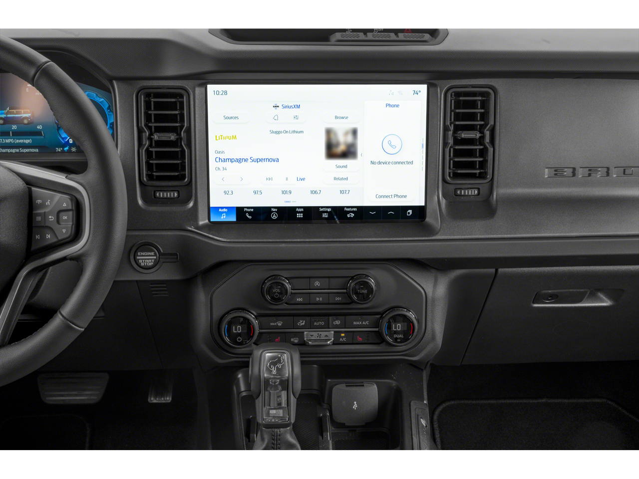 THIS VEHICLE INCLUDES THE FOLLOWING FEATURES AND OPTIONS: Equipment Group 222A Mid Package (2-Door Intelligent Access w/Lock/Unlock, Ambient Footwell Lighting, Connected Navigation, Dr & Pass Illuminated Sliding Visor Vanity Mirrors, Dual Smart Charging USB Ports, Dual-Zone Electronic Automatic Temperature Control, Front Row Heated Seats, Power Outlet - Back Side of Center Floor Console, and Rear Parking Sensors), 4-Wheel Disc Brakes, 4.46 Axle Ratio, 7 Speakers, ABS brakes, Air Conditioning, Alloy wheels, AM/FM radio: SiriusXM with 360L, AM/FM Stereo, Auto High-Beam Headlamps, Auto High-beam Headlights, BLIS Blind Spot Information System, Brake assist, Carbonized Gray Molded-In-Color Hard Top, Cloth Bucket Seats, Compass, Delay-off headlights, Driver door bin, Driver vanity mirror, Dual front impact airbags, Dual front side impact airbags, Electronic Stability Control, Emergency communication system: 911 Assist, Exterior Parking Camera Rear, Front anti-roll bar, Front Bucket Seats, Front Center Armrest, Front reading lights, Front wheel independent suspension, Fully automatic headlights, Heated door mirrors, Illuminated entry, Integrated roll-over protection, Internet access capable: FordPass Connect, Lane-Keeping System, Leather Shift Knob, Low tire pressure warning, Occupant sensing airbag, Outside temperature display, Overhead airbag, Overhead console, Panic alarm, Passenger door bin, Passenger vanity mirror, Power door mirrors, Power steering, Power windows, Pre-Collision Assist w/Automatic Emergency Braking, Radio data system, Rear-View Camera, Rear-Window Defroster & Washer, Remote keyless entry, Security system, SiriusXM w/360L, Speed control, Split folding rear seat, Steering wheel mounted audio controls, SYNC 4, Tachometer, Telescoping steering wheel, Tilt steering wheel, Traction control, Trip computer, Variably intermittent wipers, and Wheels: 17 Carbonized Gray-Painted Aluminum.